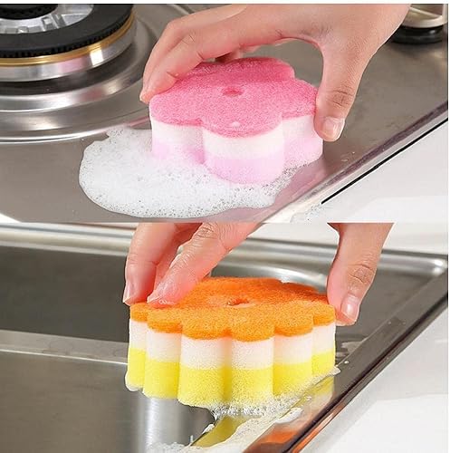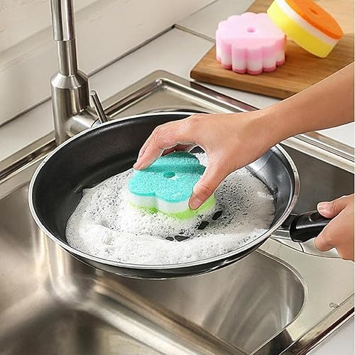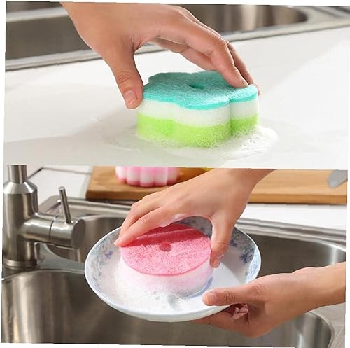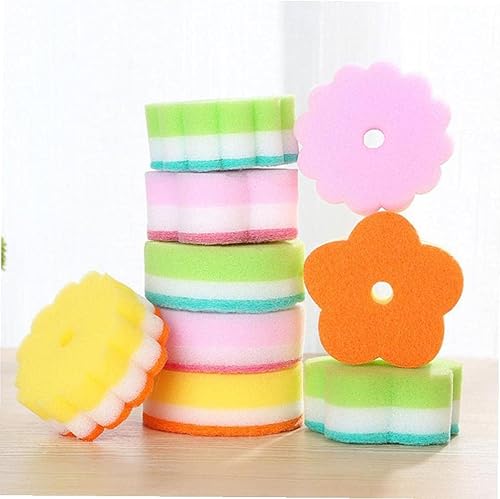 Ruluti Éponges Pads De Décapage Forme De Fleur en Verre Éponge Brosse Vaisselle Laver Vaisselle De Noël Éponge Cuisine Outil Couleur Aléatoire