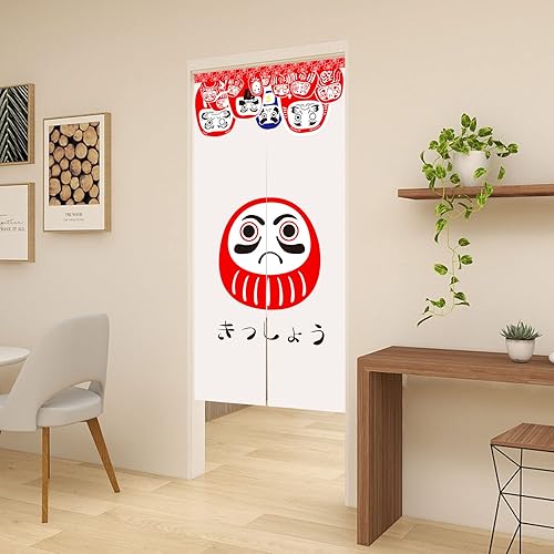 LIGICKY Noren Rideau de Porte Style Japonais Daruma Imprimé Fenêtre Tapisserie pour Décoration de Maison 85 x 150 cm