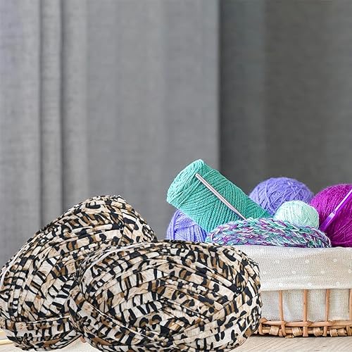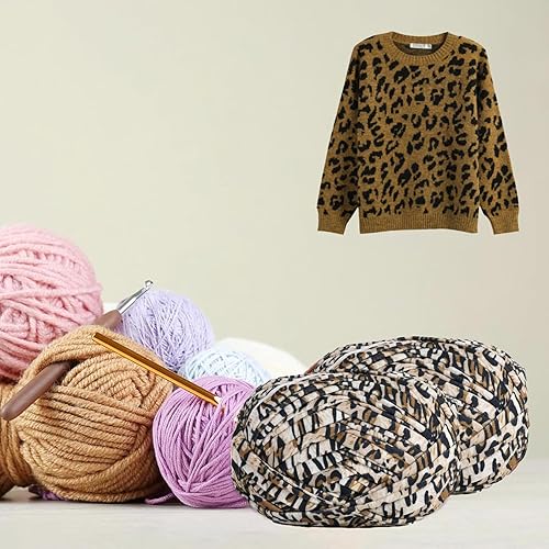 Spldsun 2 Pièces Fil de Laine à Tricoter,Fil De Crochet En Tricot, Coton Crochet, pour Tricoter Fournitures Tissage de Panier de Fil de Crochet(Léopard)