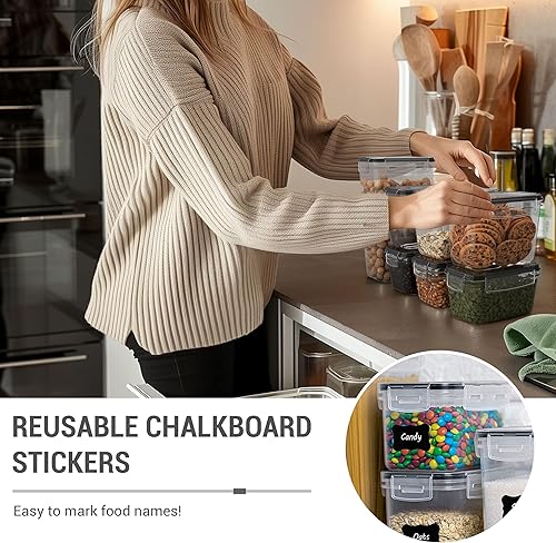 GREEN MORE Lot de 25 boîtes de conservation avec couvercle hermétiques, avec stylo d'écriture et étiquette, boîtes de rangement de cuisine pour céréales, farine, grains de café, grains, spaghetti, etc
