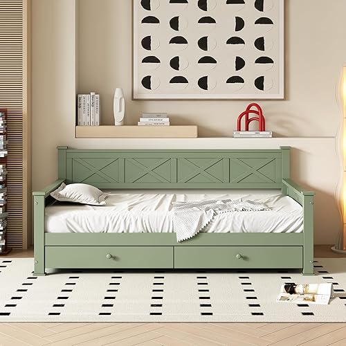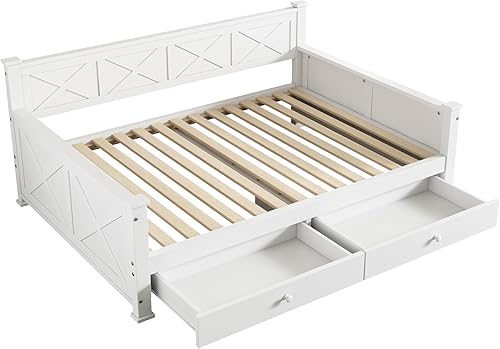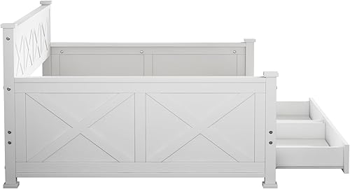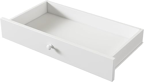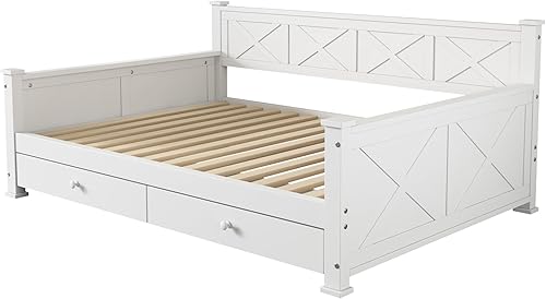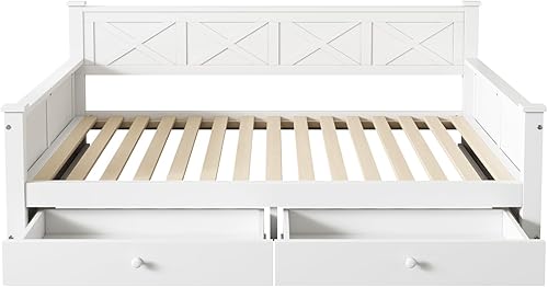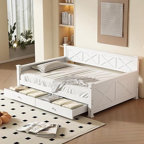 Darywell Lit plat, 90 x 200 cm, avec sommier à lattes, sans matelas, 2 tiroirs, minimaliste, en bois de pin, blanc