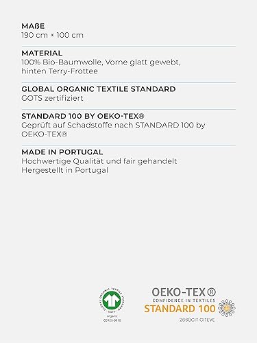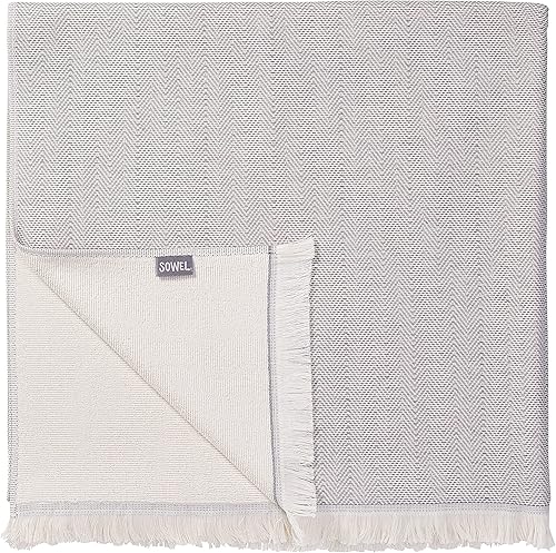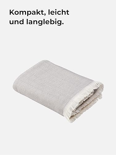 Sowel® Serviette de hammam de qualité supérieure avec dos en tissu éponge, serviette de plage en 100 % coton biologique, 100 x 190 cm, fabriquée au Portugal, gris/écru