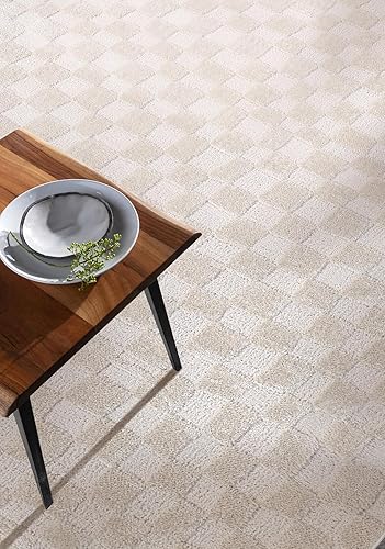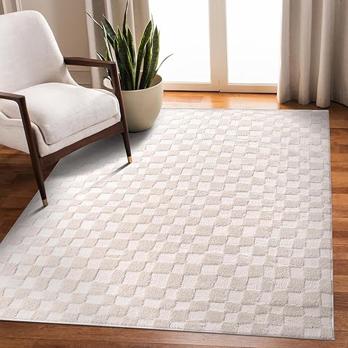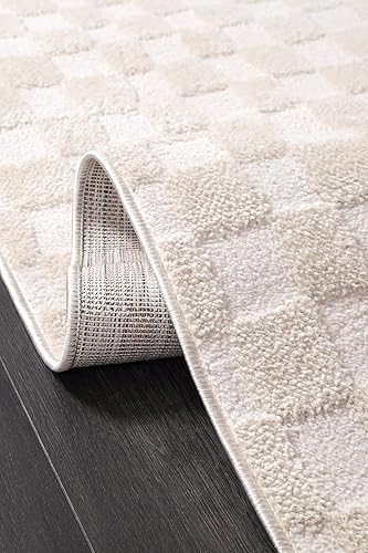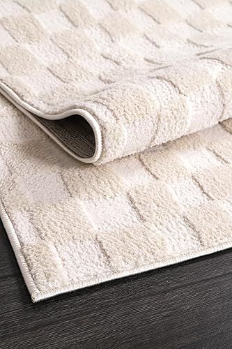 Rugium Tapis Moderne à Carreaux Crème Doux Tapis Rectangulaire Salon Chambre Tapis Cuisine Couloir Salle à Manger Effet Gaufré (80x150cm)
