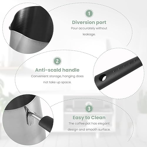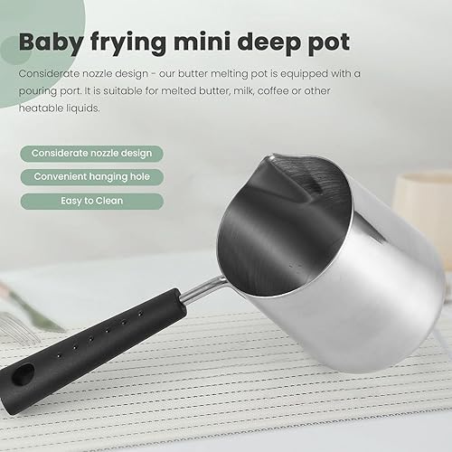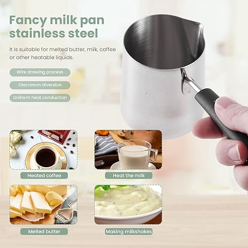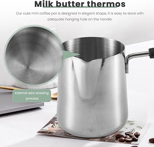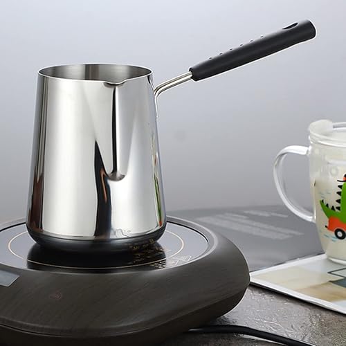 OVNSHVN Pot Chauffe-Beurre de Lait de 350 ML, CafetièRe Turque, Pot de Fonte de CuisinièRe en Acier Inoxydable avec Bec Verseur pour Le Thé, Chauffage