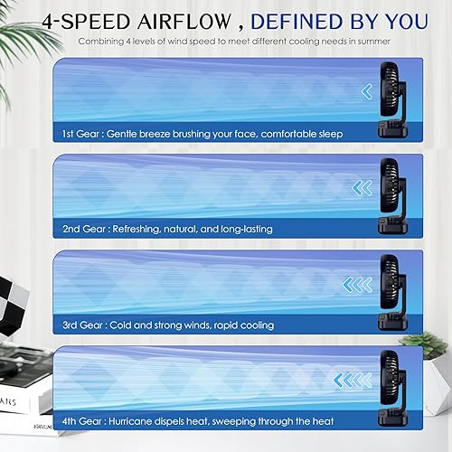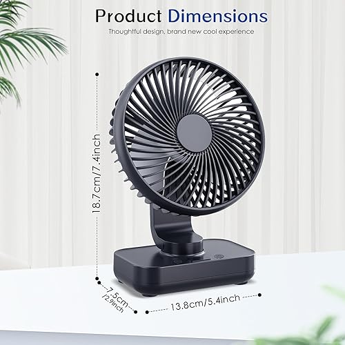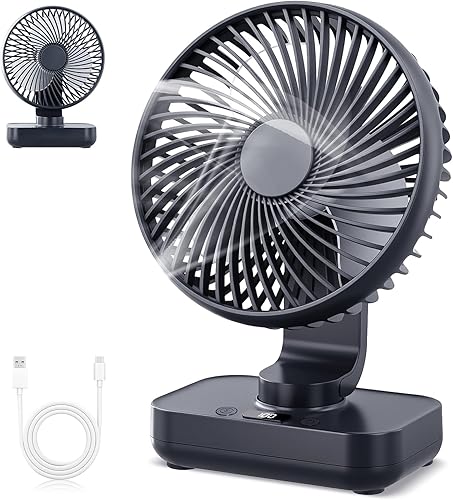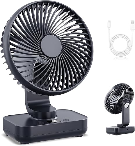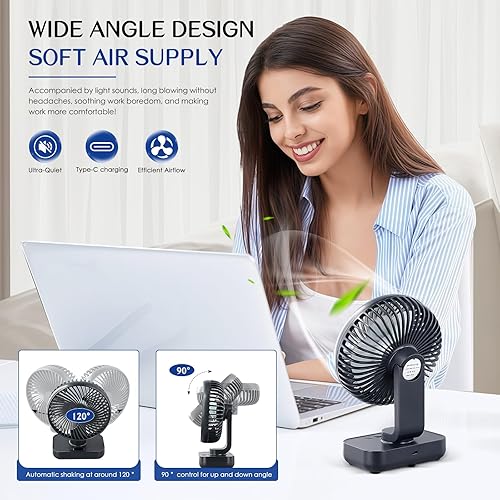 Mapille Mini Ventilateur de Table Silencieux, Oscillation 120°, 4 Vitesses, Petit Ventilateur de Bureau Puissant, 4000mAh Batterie, USB-C Rechargeable & Portable, pour Bureau Maison Extérieur (Noir)