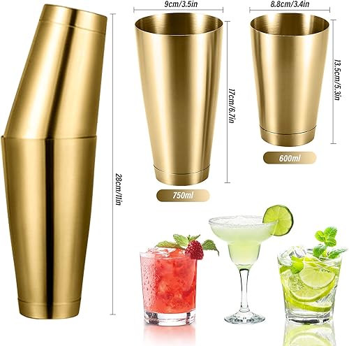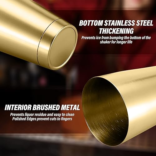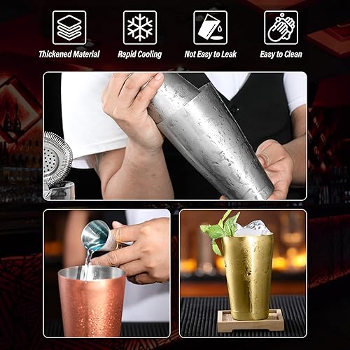 Pro Bar Shaker Boston Shaker,Shaker à Cocktail, Shaker à Martini en Acier Inoxydable Mélangeur de Boissons pour Barman Outils Essentiels Boîtes métalliques lestées Ensemble de Shaker à(Le cuivre)