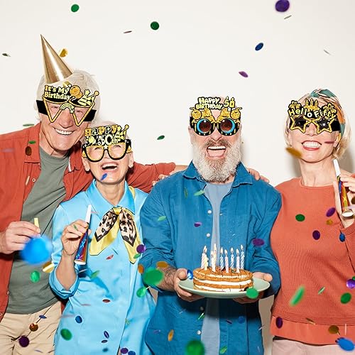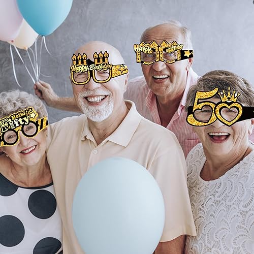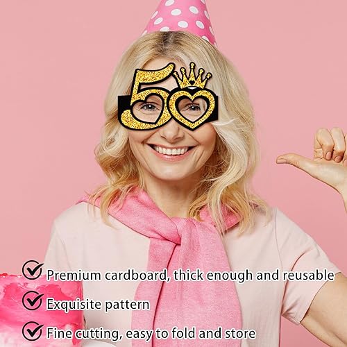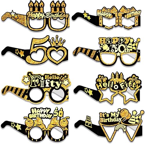 8 Pièces Lunettes de Soleil en Papier pour 50e Anniversaire, Happy Birthday Party Paper Eyeglasses, Accessoires de Photomaton pour Fête d'anniversaire, Filles et Femmes, Cadeaux