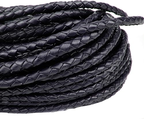 esnado Cordon en cuir tressé rond 5 mm Bleu 5 m - Longueur au choix