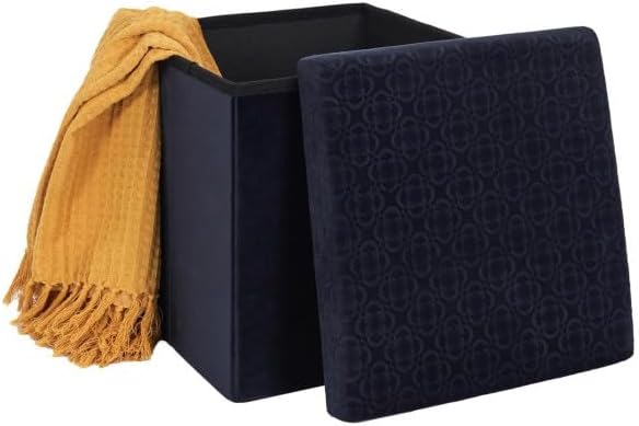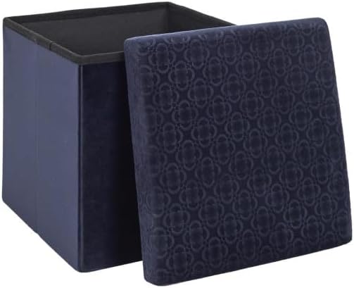 Paris Prix Pouf Pliable & Coffre Rétro 38cm Bleu Nuit