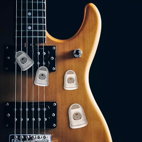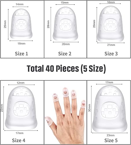 Protecteurs de Bout du Doigt de Guitare Protège-Doigts de Bouts Antidérapants Capsules de Protection des Doigts pour Instruments à Cordes Comptage Couture Paperasse, 5 Tailles (40 Pièces, Transparent)