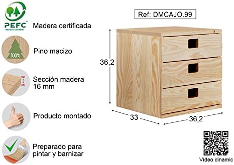 ASTIGARRAGA Bloc de Rangement 3 Tiroirs DINAMIC , Pin, Beige, 36,2 x 33 x 36,2 cm
