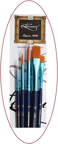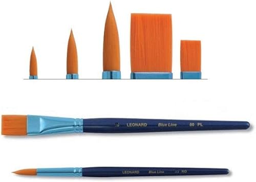 Pinceau Leonard Blue Line synthétique Série 80RO rond 4.10.16, Série 80PL. Brosse Plate 6.12. SET 5 PCS Pour aquarelle, peinture à l'huile et acrylique