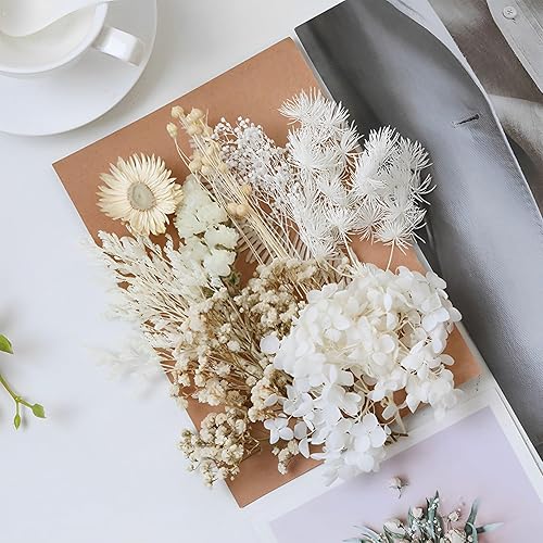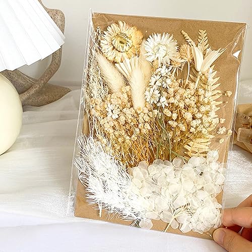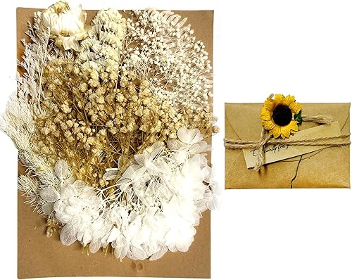 MEMOFYND 1 pièce de fleurs séchées artificielles avec 1 carte de vœux, bouquet de fleurs mélangées, décoration florale conservée pour bricolage, scrapbooking, coques de téléphone portable, artisanat