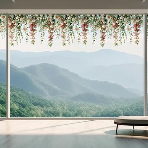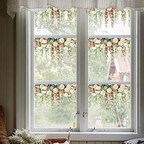 KASESSS 6 Feuilles Stickers Fenetre Fleurs, Électrostatique Sticker Fenetre, Autocollant fenetre Fleurs, Roses Branche Vigne Stickers Vitre, Autocollant Vitre pour Salon Chambre à Coucher Cuisine Café