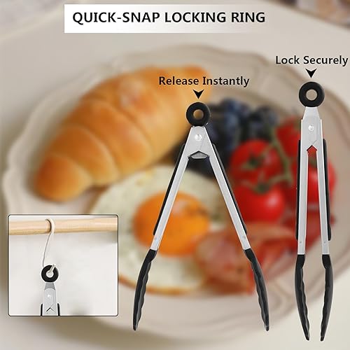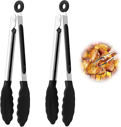 2 PCS Pince Cuisine Silicone(22cm), Pince de Cuisine, Pince cCuisine Silicone, Pince en Silicone pour Air Fryer, Pince Alimentaire Résistante à la Chaleur, Outil Multifonction pour Barbecue et Cuisine