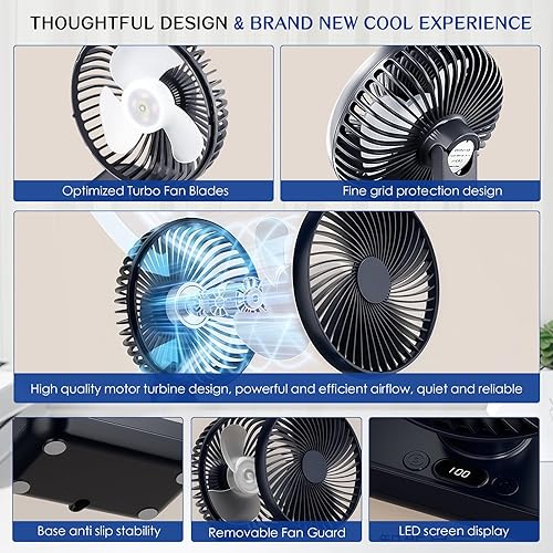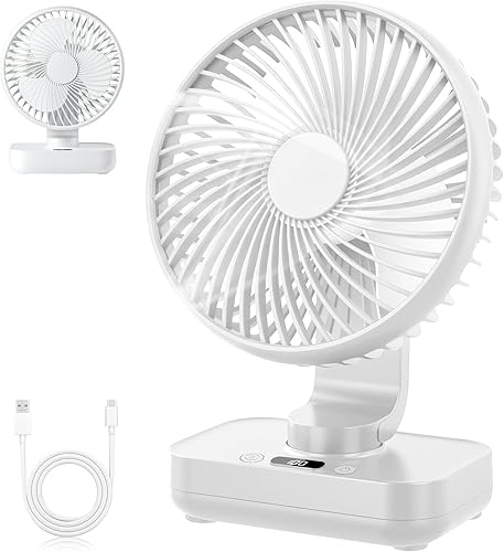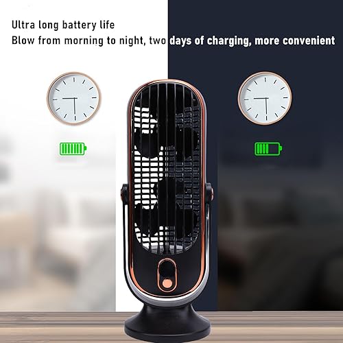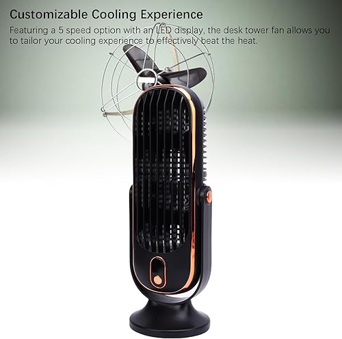 RIZGHWOY Ventilateur de la Tour de Bureau, Ventilateur Rechargeable USB Ventilateur de Bureau Portable 5 Vitesses Réglables de la Batterie de 1000mAh avec Tête Inclinable et Affichage LED (1)