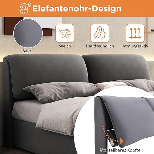 Zepneiy Lit 140x200 avec Sommier hydraulique et 3 Tiroirs, Lit Coffre 140x200 avec Rangement et Tete de Lit, Lit Double avec à Lattes Lit, Cadre de lit 140x200 en Velours Beige(sans Matelas)