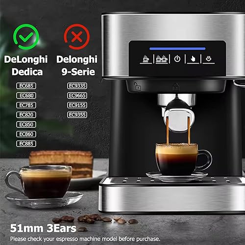 ROTKUSZ Espresso Bottomless Porte-filtre 51mm, Porte Filtre à Café porte-filtre sans fond Acier Inoxydable, Compatible avec DeLonghi Dedica EC680/EC685/EC785/EC820/EC850/EC860(3 oreilles)