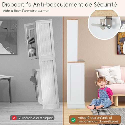 COSTWAY Buffet de Cuisine 2 Tiroirs, Meuble Cuisine avec Plan de Travail en Caoutchouc, Placard de Poubelle 38 L, Meuble Poubelle Rangement, Armoire Cuisine, Vaisselier Bois Blanc
