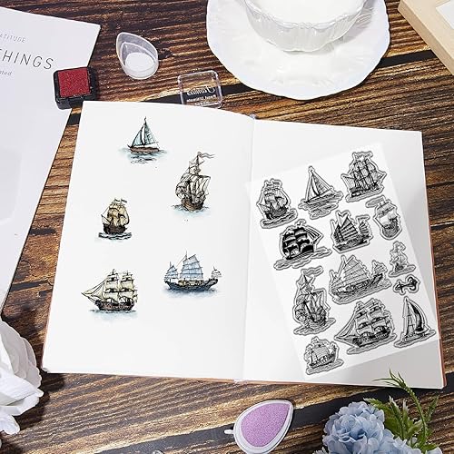craspire Tampons Transparents en Forme de Voilier - Tampons en Caoutchouc Vintage - Thème Nautique - Fond Réutilisable en PVC - Cachet Postal en Silicone Transparent pour Journalisation, Fabrication