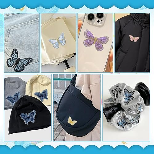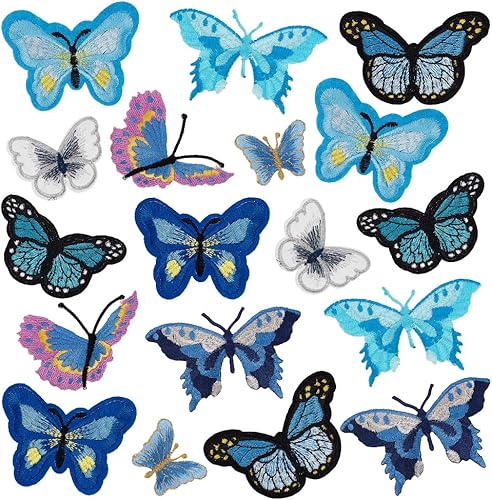 PH PandaHall 18pcs Papillon Thermocollant Sur Patchs, 9 Style Patchs de Broderie Papillon Bleu Badge Brodé Appliqué à Coudre Sur les Patchs de Réparation pour Vêtements