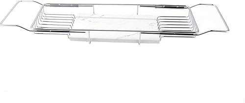 HURRISE Plateau de baignoire extensible en acier inoxydable effet marbre pour anniversaire (blanc doré)