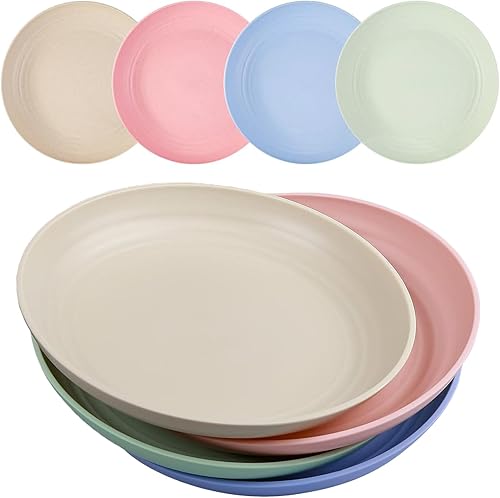 Lot de 4 assiettes en plastique réutilisables, incassables, 20 cm, assiettes de camping légères pour pique-nique, salade, pâtes, fête, maison, bureau, passent au lave-vaisselle et au micro-ondes (gris