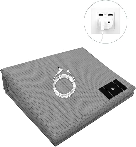 RIQINXIN Drap-Tapis de Mise à la Terre - 10% Fibre d'argent & 90% Coton Bio - Améliore Le Sommeil et Soulage Les Douleurs Grau (160x200cm)