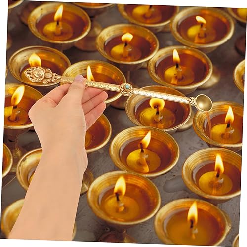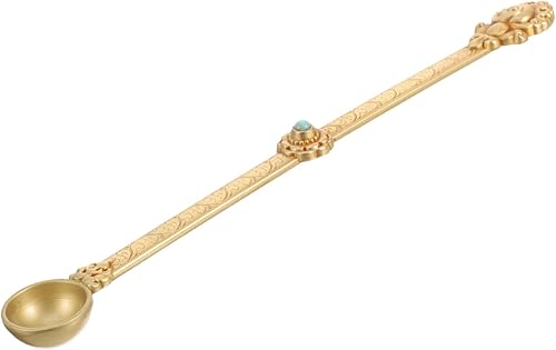 Uonlytech Cuillère Laiton pour Hawan Cuillère Artisanale pour Verser du Ghee Lors des Rituels Cuillère Bouddha Éthique Et Antique