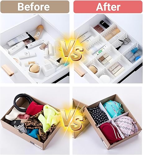 20 organisateurs de tiroir réglables, séparateurs de tiroirs et organisateurs de tiroir, parfaits pour le linge, les chaussettes, les cosmétiques, le DIY, pour chambre et bureau, blancs