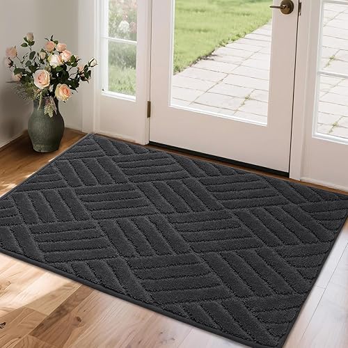 FEOMOS Paillasson Intérieur Entrée Attrape-Poussière,Tapis de Sol Antidérapant Absorbante,Tapis d'Entrée Lavable en Machine pour Chien,Porte,Entrée,Chambre, Couloir,Cuisine,Gris Charbon, 60cm x 90cm