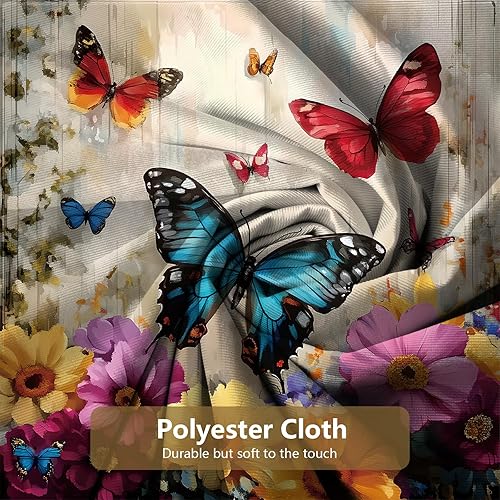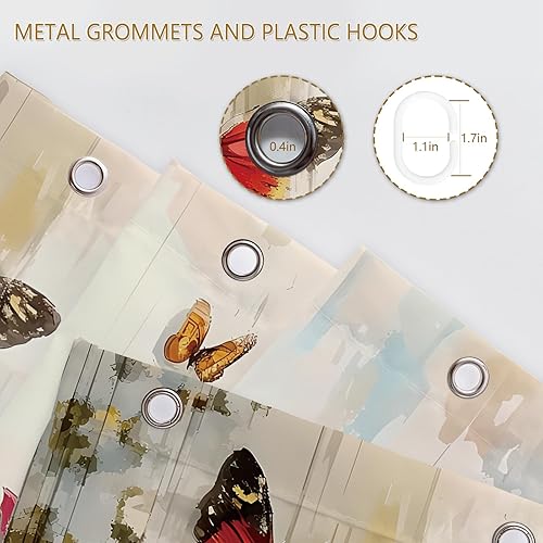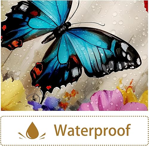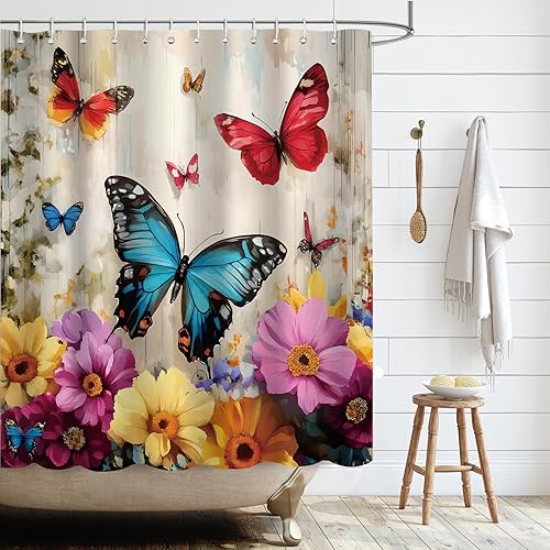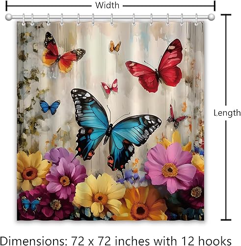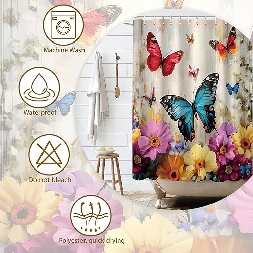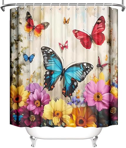 APROPHIC Rideau de Douche Papillon Rideau Douche 180 x 180 Rideaux de Douche Aquarelle Rideau Baignoire Fleur Rideau de Douche Art Style Rideau de Douche Lavable en Machine avec 12 Crochets Bleu Rouge