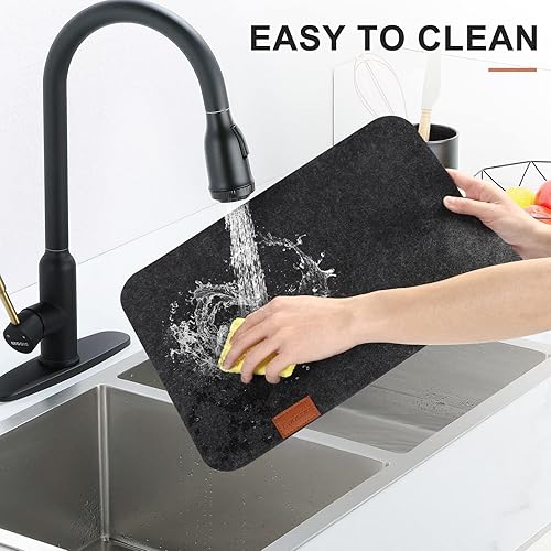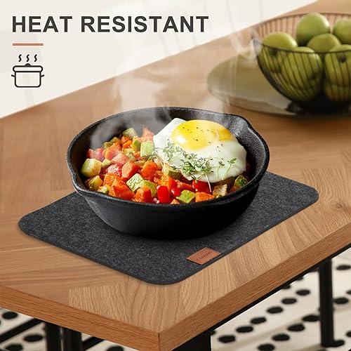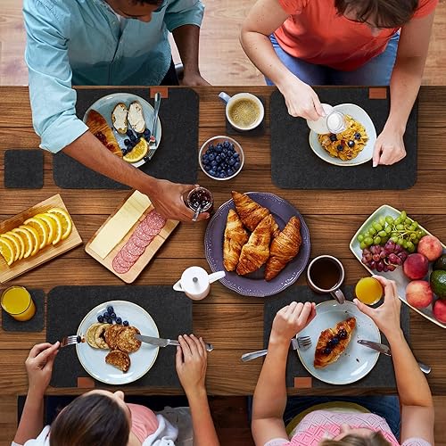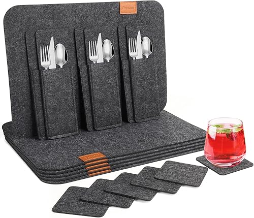 Cinnani Set de Table en Feutre Rectangulaire Gris Foncé, 18 Pièces : 6 Sets de Table + 6 Dessous de Verre + 6 Sacs à Couverts, Lavable, Antidérapant, Imperméable, Résistant à la Chaleur