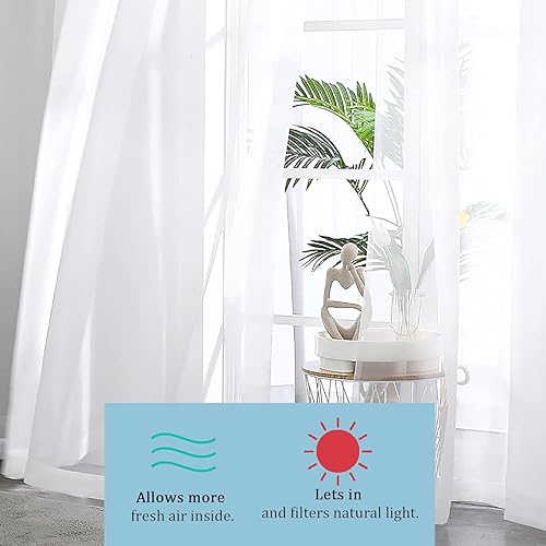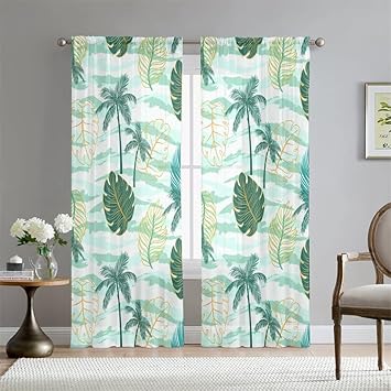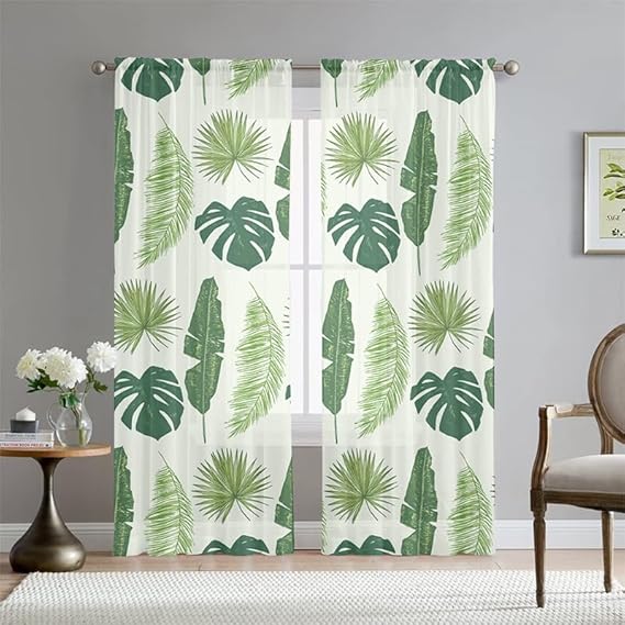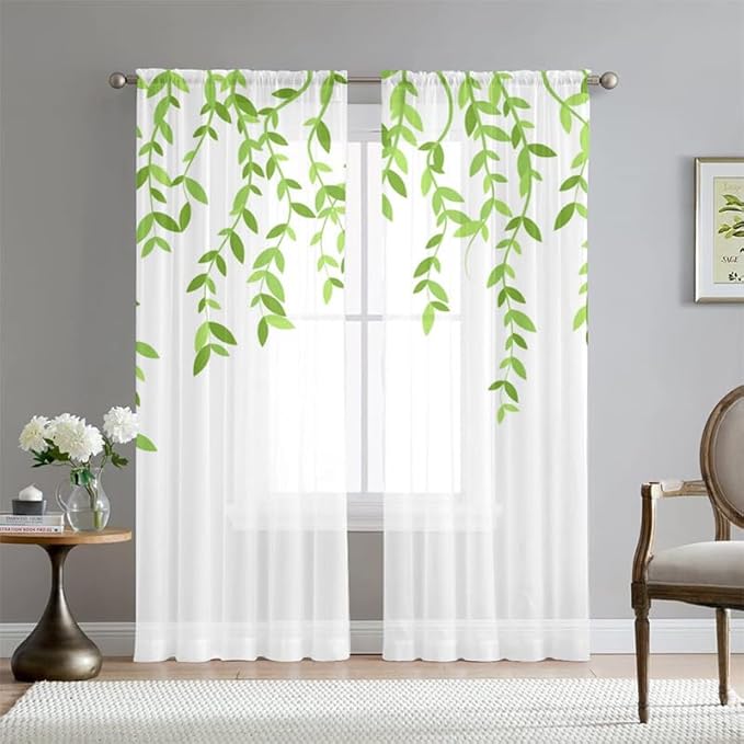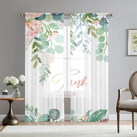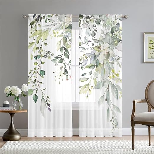 Mateju Rideau Voilage Blanc,Voilage Fenetre 3D Botanique,Rideau Salon Moderne Lot de 2 Semi-Transparent Intérieurs Décoration,pour Cuisine Chambre (Fleurs Feuilles,108L X 160H cm)