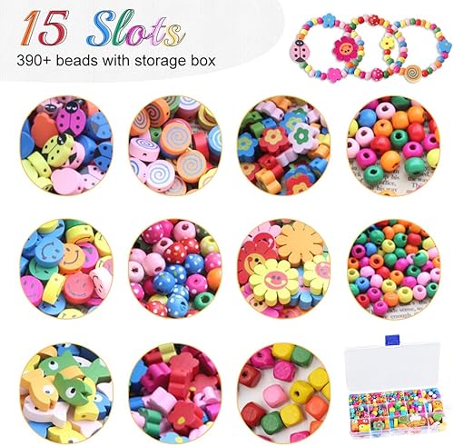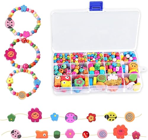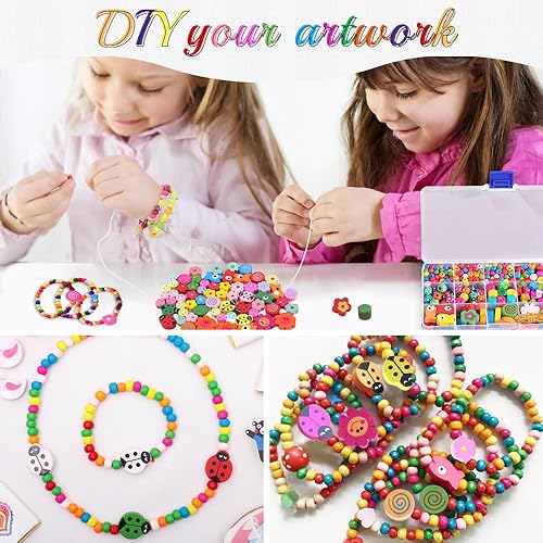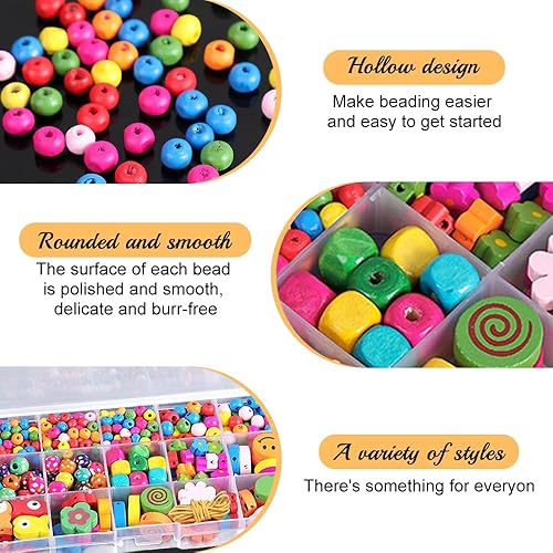 GIDWRIY 400 PCS Perles Bois Colorées,Perle en Bois à Enfile pour Macramé,Perle Naturelles pour Bijoux Enfant,Polygone Perles pour Bracelet Gros Trou,Bille de Couleur Naturel pour Fabrication Bijoux