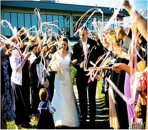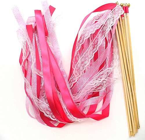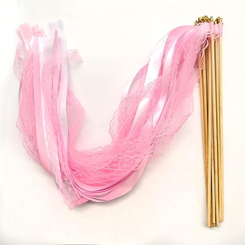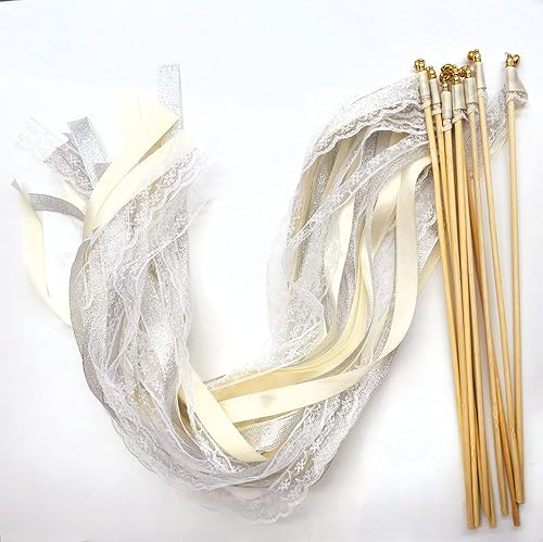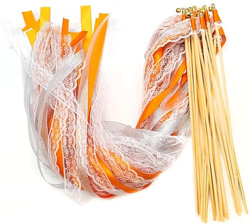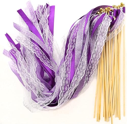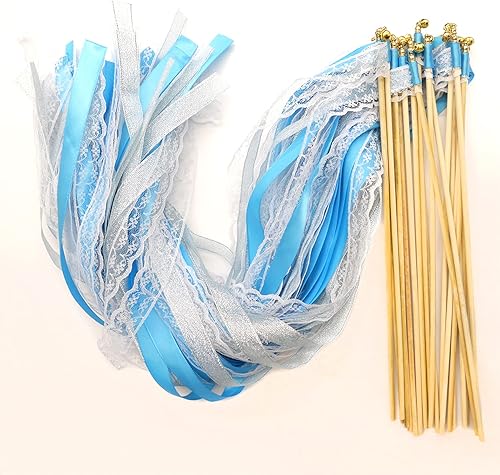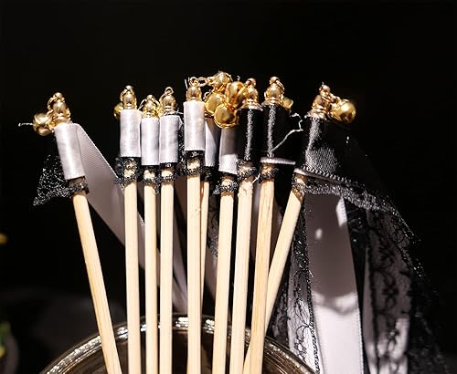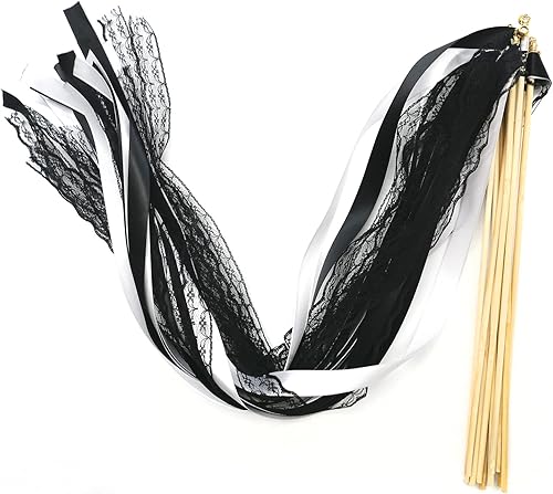 Duories Lot de 30 baguettes magiques de mariage avec clochettes, dentelle serpentins en soie, ruban en dentelle pour mariage, fête prénatale, anniversaire, vacances, Noël, noir
