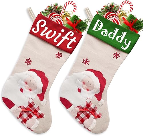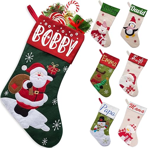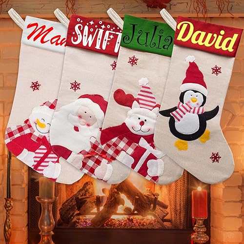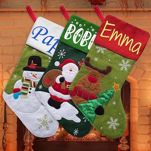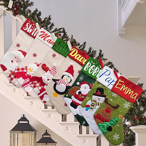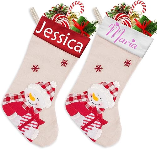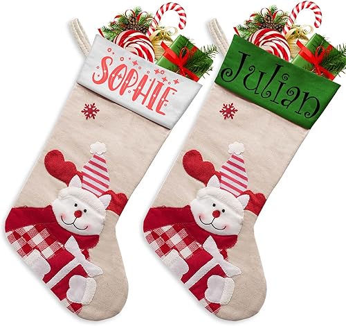 Xiuyours Chaussette de Noel Personnalisé Prenom Nom, Personnaliser Chaussettes Noel Personnalisable a Suspendre Cadeau, Decoration Chaussette Noël pour Enfant Famille Cheminee - 38cm