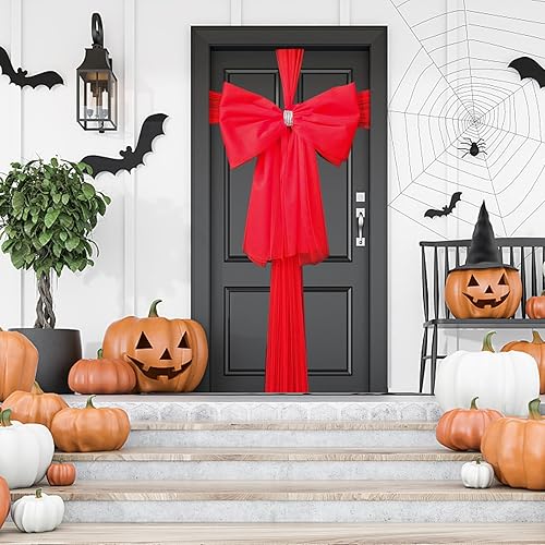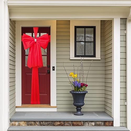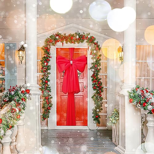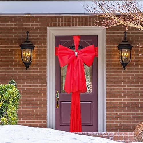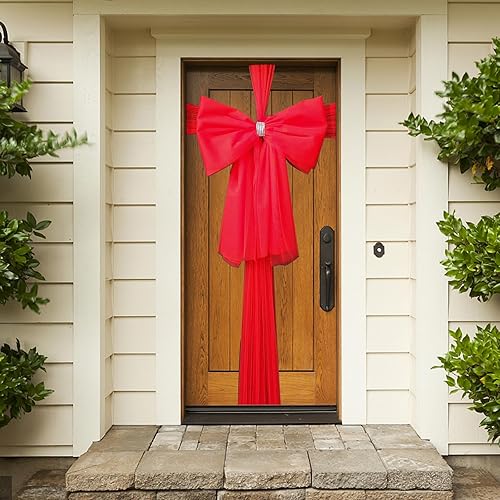 YODEN Nœud de Porte de Noël, décoration de Porte d'entrée de Noël, Double nœuds avec décoration en Strass, Mariage, fête, Noël, fête prénatale, décorations de Porte de Noël (Rouge)