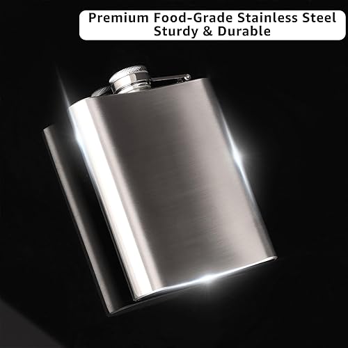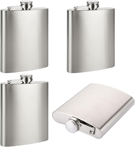 MUXHEL 4 packs 7oz / 200ml flasque en acier inoxydable, flasque argentée, bouteille de whisky en acier inoxydable étanche pour l'alcool