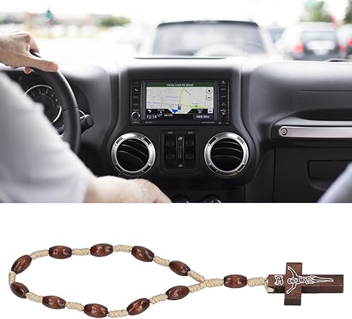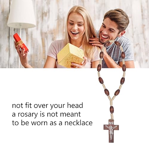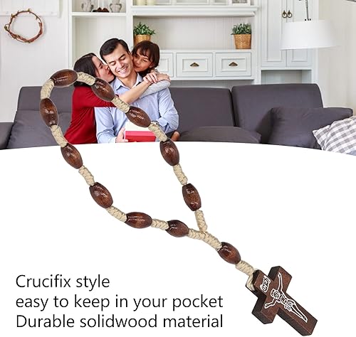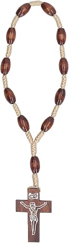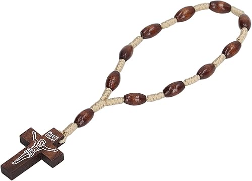 Qcwwy Chapelet en Bois Petit Chapelet Catholique sculpté à la Main en Bois Solide de Style Crucifix pour le Baptême Catholique en D'olivier de Terre Sainte D'israël