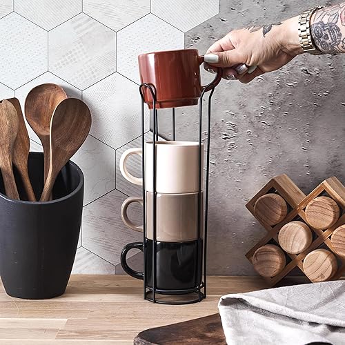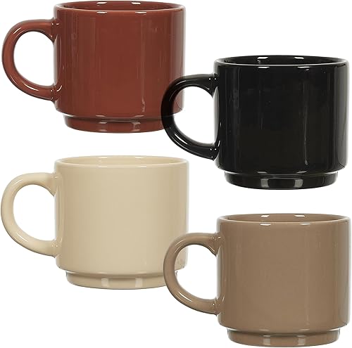 Lot de 4 Mugs Unis en céramique avec Support 22 cl Collection Hortense