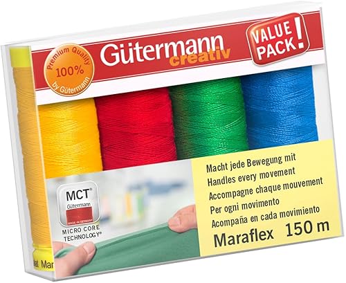 Gütermann Creativ Maraflex Ensemble de Fils à Coudre Élastique Haute Extensibilité - Fils Multicolores pour Encolures et Coutures, Variation de Couleurs 2, 4 x 150m - 1 Ensemble