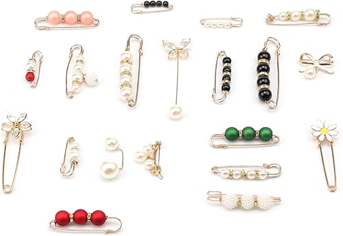 ZIJANG Broche Perle Épingle, 20 Pièces Épingle Vetements, Métal Broche de Perle Simulée, Décolleté Réduit, Épinglette Élégante, Sûreté Broche, pour Attacher Cols, Foulards, Foulards