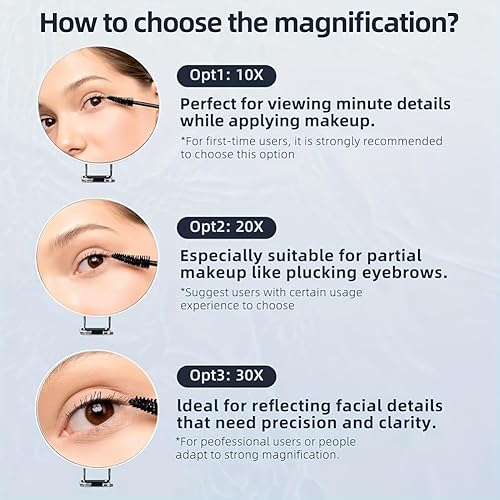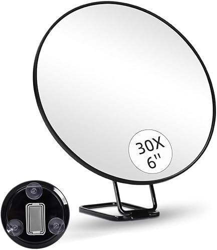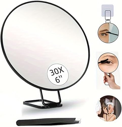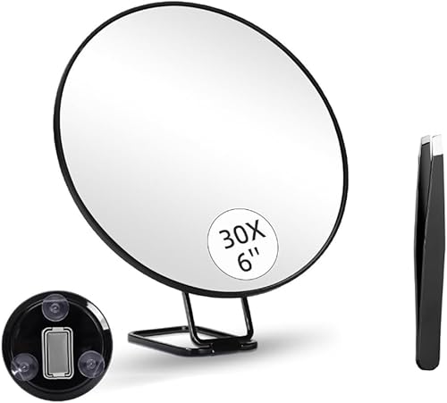 Giyofom Miroir Grossissant 30X avec Support et Pince à Épiler, Miroir de Maquillage Grossissant avec 3 Ventouses pour la Toilette et les Voyages