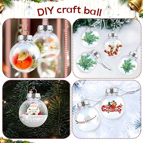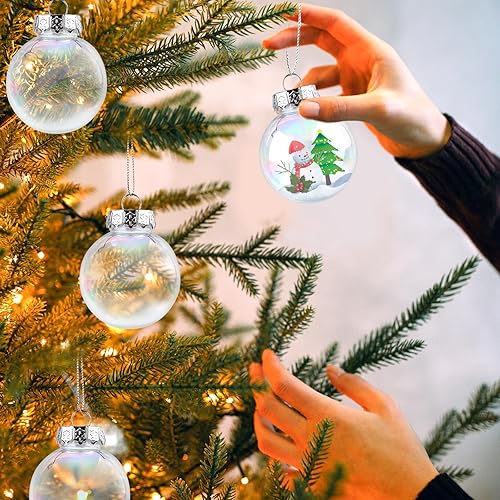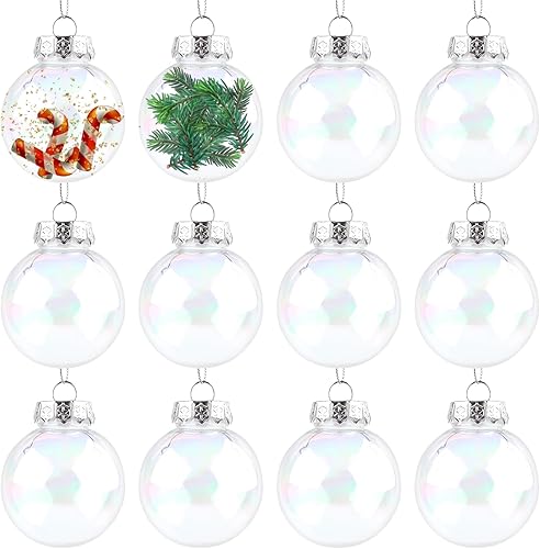 5,8cm 12pcs Boules d'Ornement Irisées, Boules Transparentes Boules Rondes de Noël à Remplir en Plastique Sphères d'Ampoule pour Fête d'arbre de Noël Décoration de Maison Mariage Anniversaire