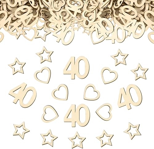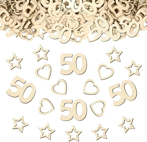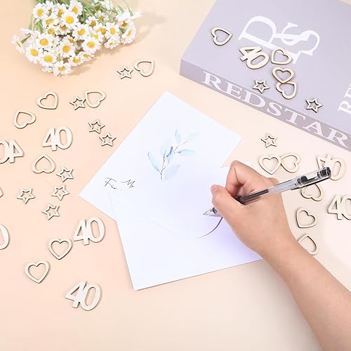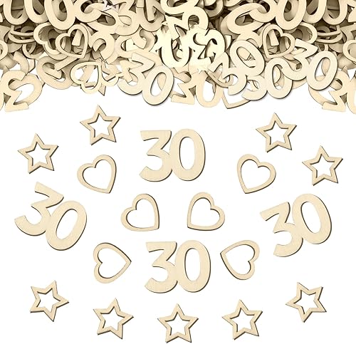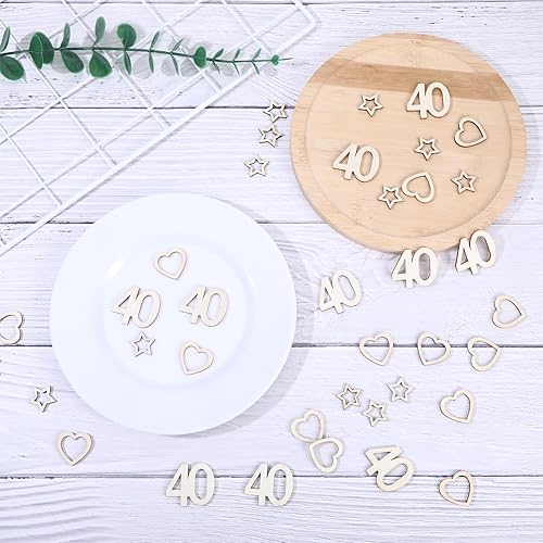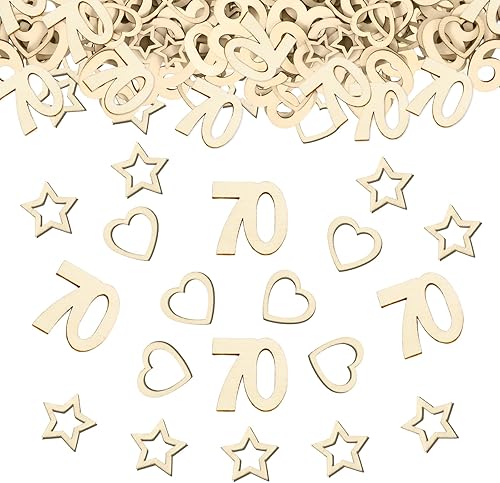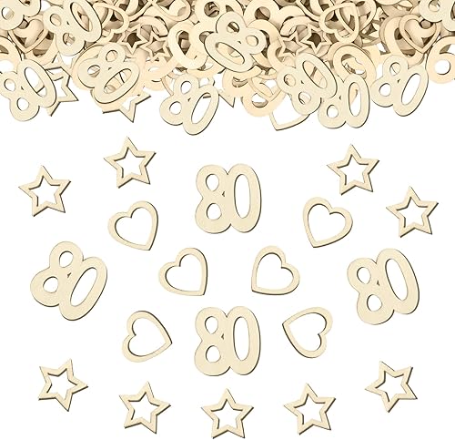 Lot de 150 confettis en bois pour 80 ans - En bois - En forme de cœur et d'étoile - Décoration de table d'anniversaire