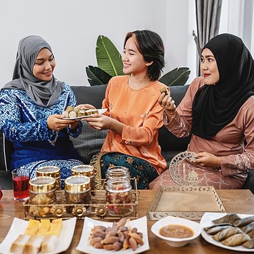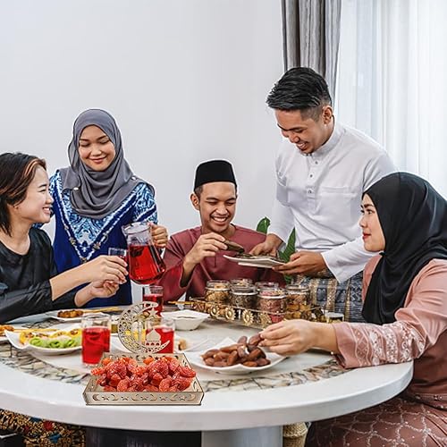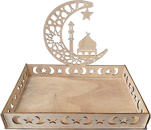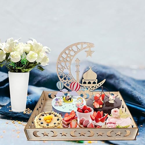 Plateau Ramadan en Bois Plateau en Bois pour L'aïd Plateau à Dessert pour L'islam Ramadan Décorations De Table pour L'aïd Mubarak Fournitures pour Fêtes Musulmanes (A)