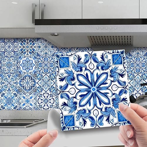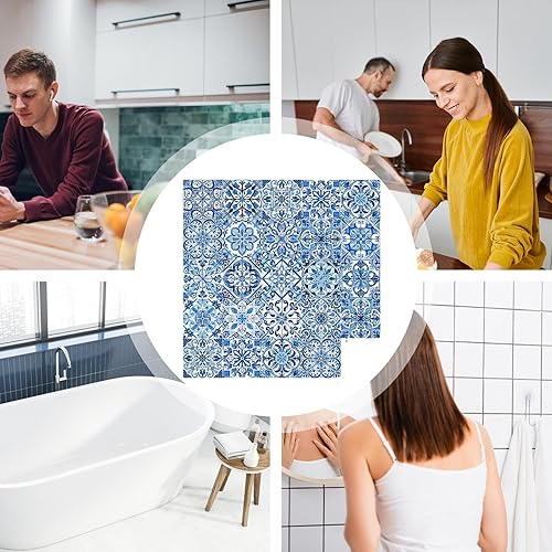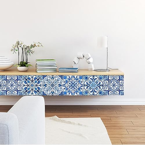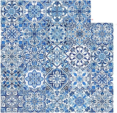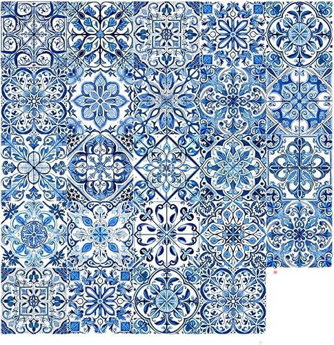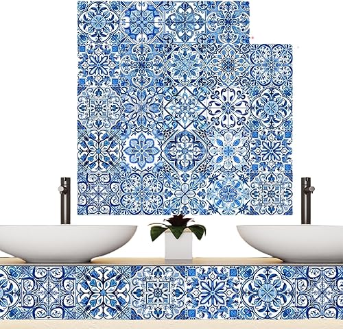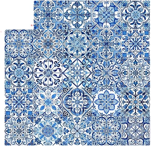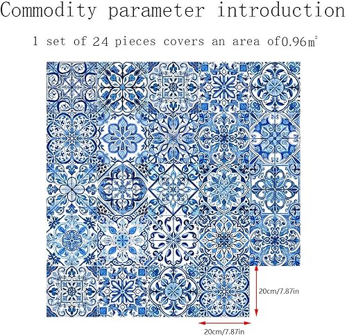 Lot de 24 autocollants muraux en porcelaine de style portugais rétro imperméables et amovibles 10/15/20 cm Bleu et blanc