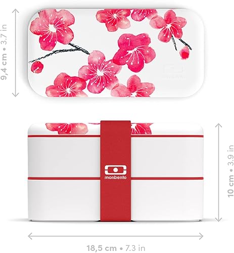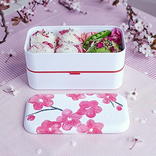 monbento - Bento box MB Original Graphic Blossom - Boîte Repas à Compartiments - Lunch box Hermétique 2 étages - Idéal pour Travail/Ecole - Sans BPA - Made In France - Motif Japonais, Fleurs - Blanc