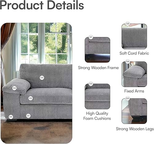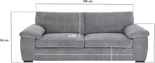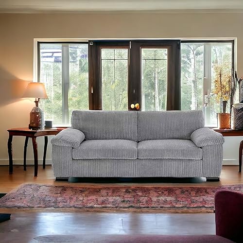 Grand canapé 3 places en velours côtelé doux et moderne (gris)